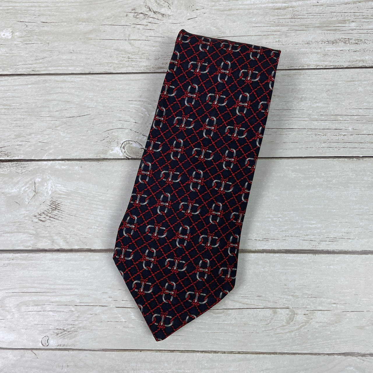 【高級】HERMES エルメス / ブラック×レッド 総柄フランス製 ネクタイ