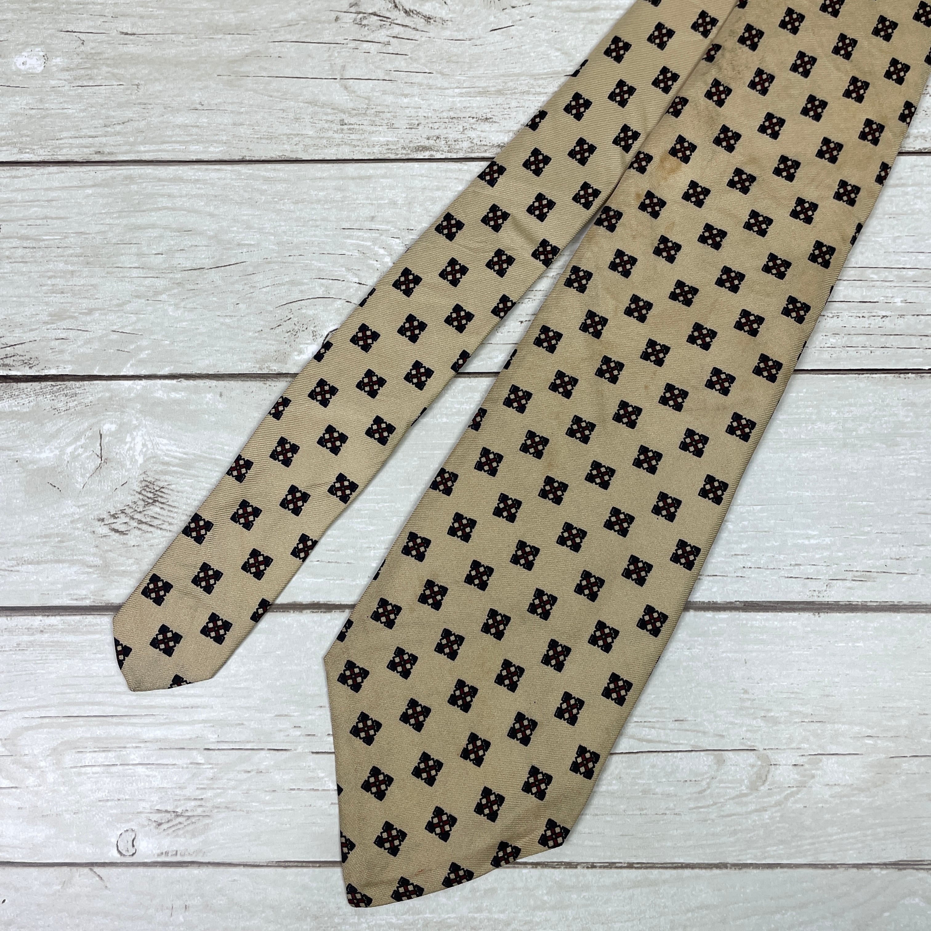 【良品】Brooks Brothers/米国製 ベージュ 総柄 シルク ネクタイ