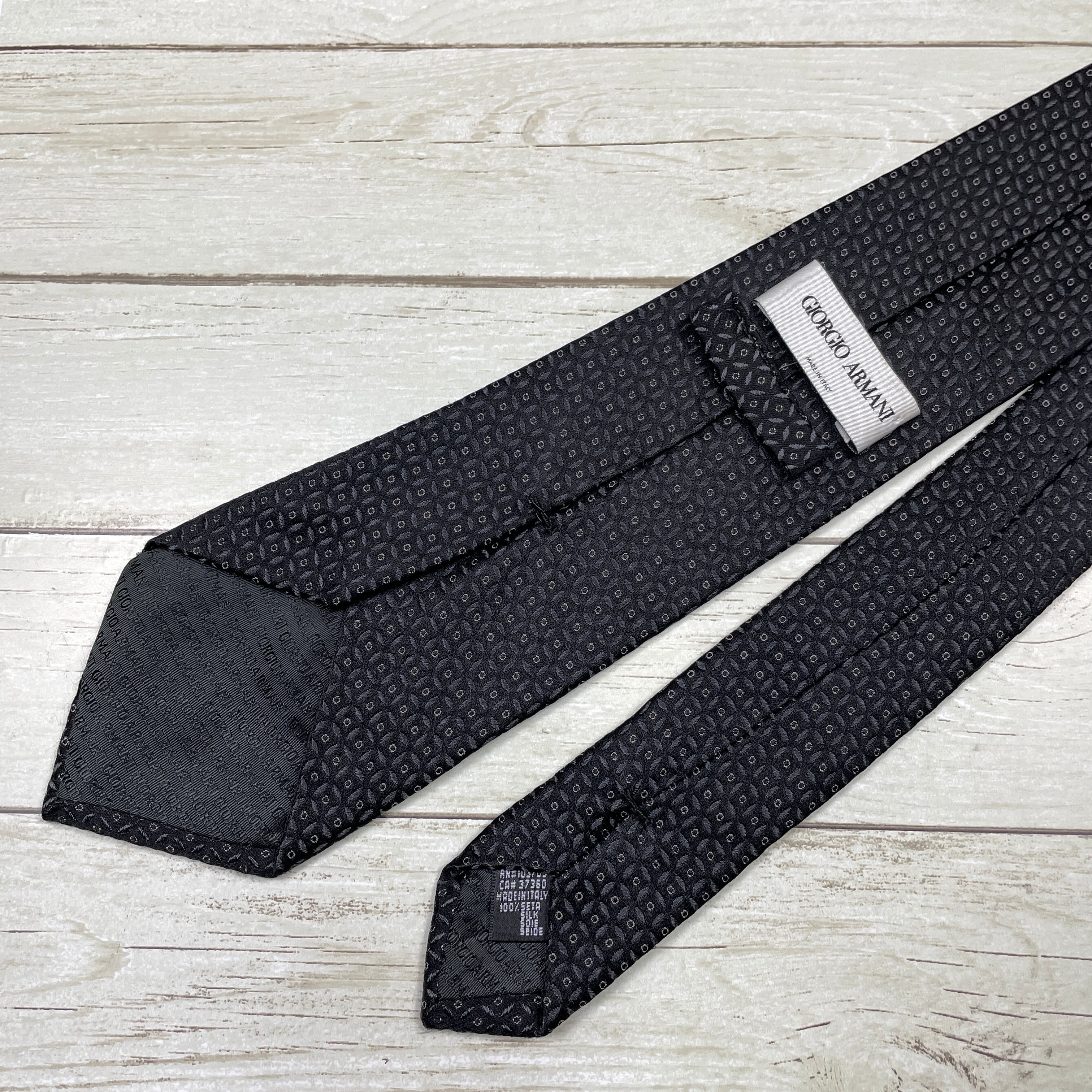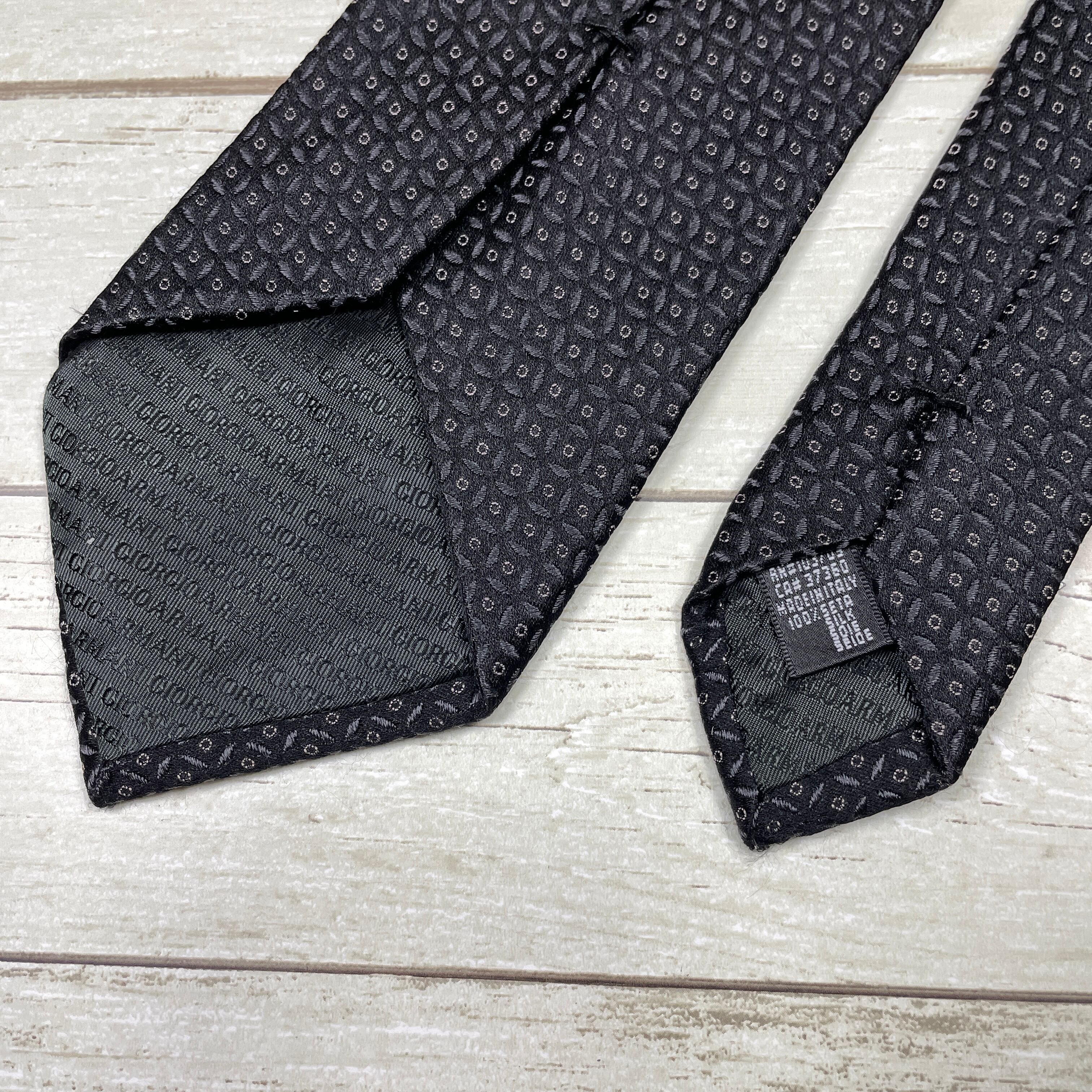 【美品】GIORGIO ARMANI / 総柄 黒 イタリア製 ネクタイ シルク