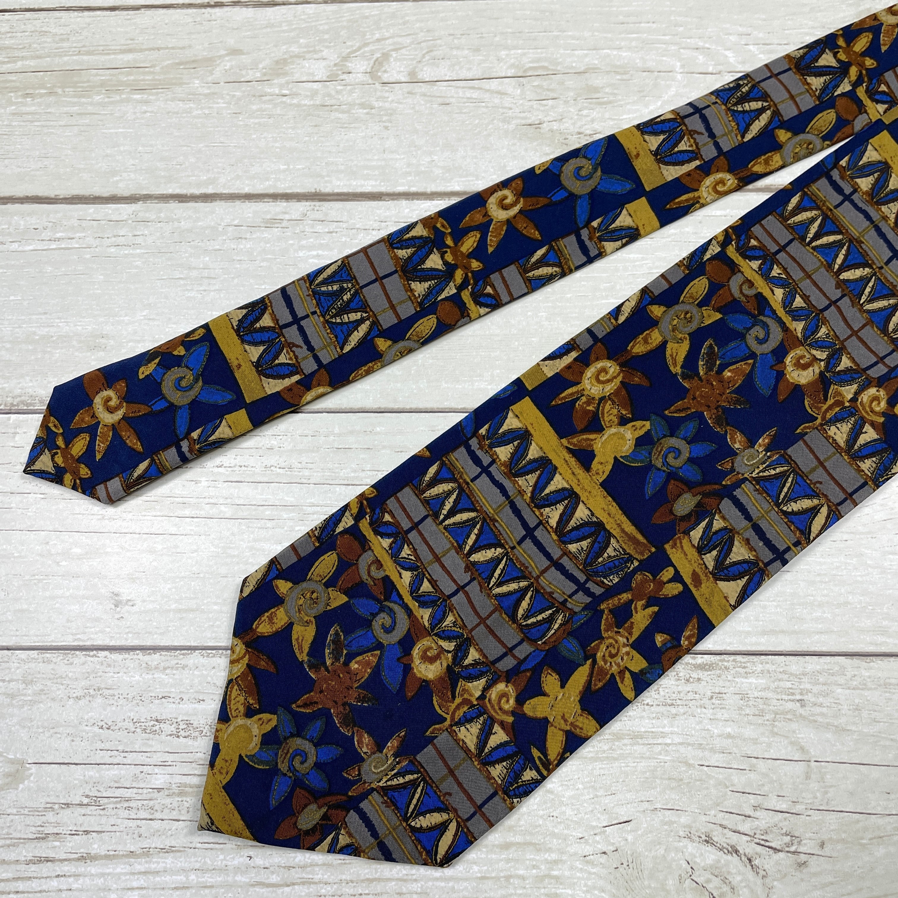 【レトロ】Ungaro/ウンガロ 総柄 ブルー シルクイタリア製 ネクタイ