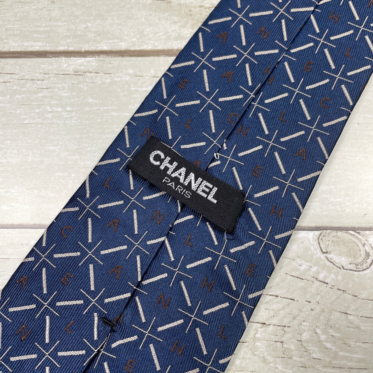 【美品】CHANEL/シャネル 総柄 高級 ネイビーブルー イタリア製 ネクタイ