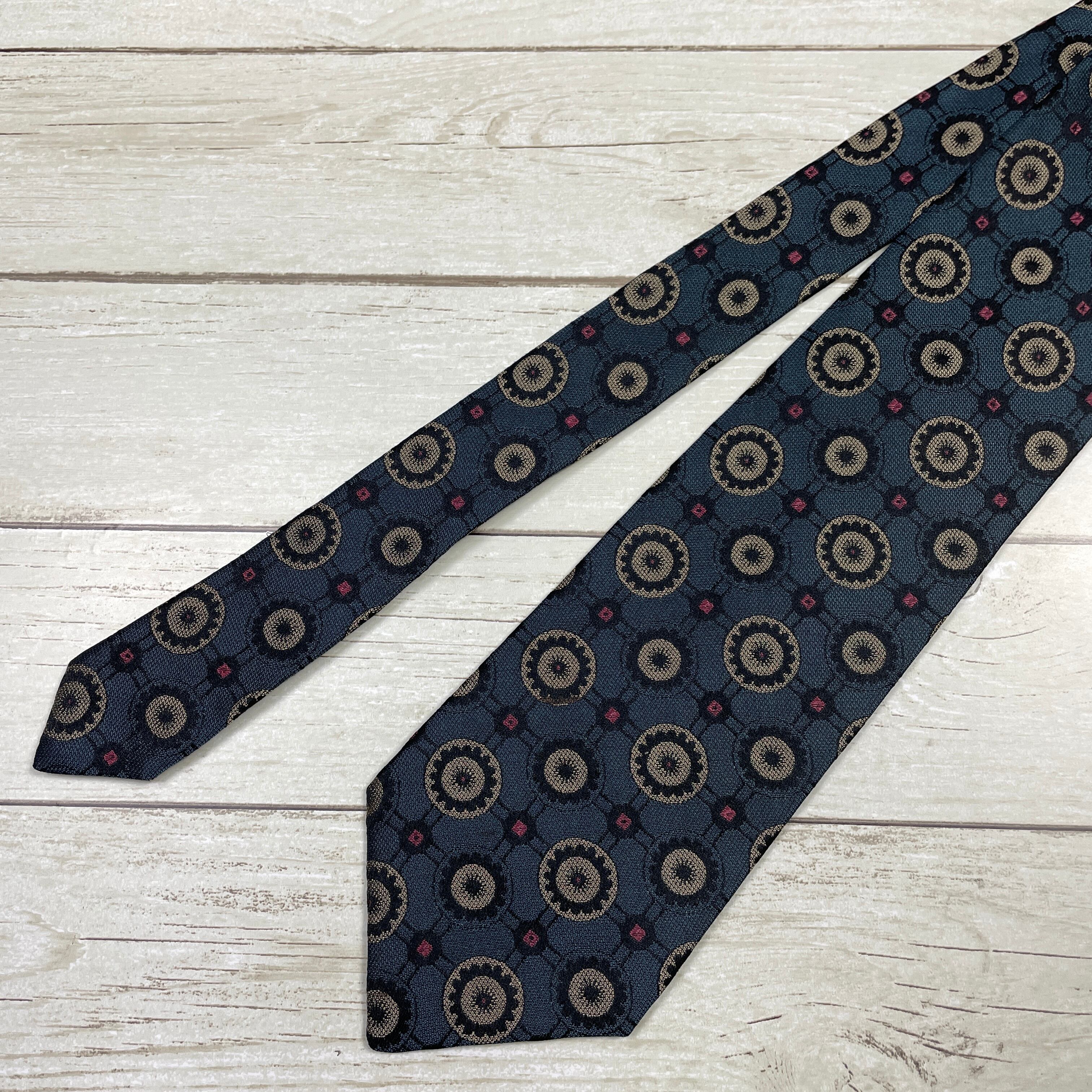 【美品】DURBAN/ダーバン 総柄 ブルー シルク 日本製 ネクタイ