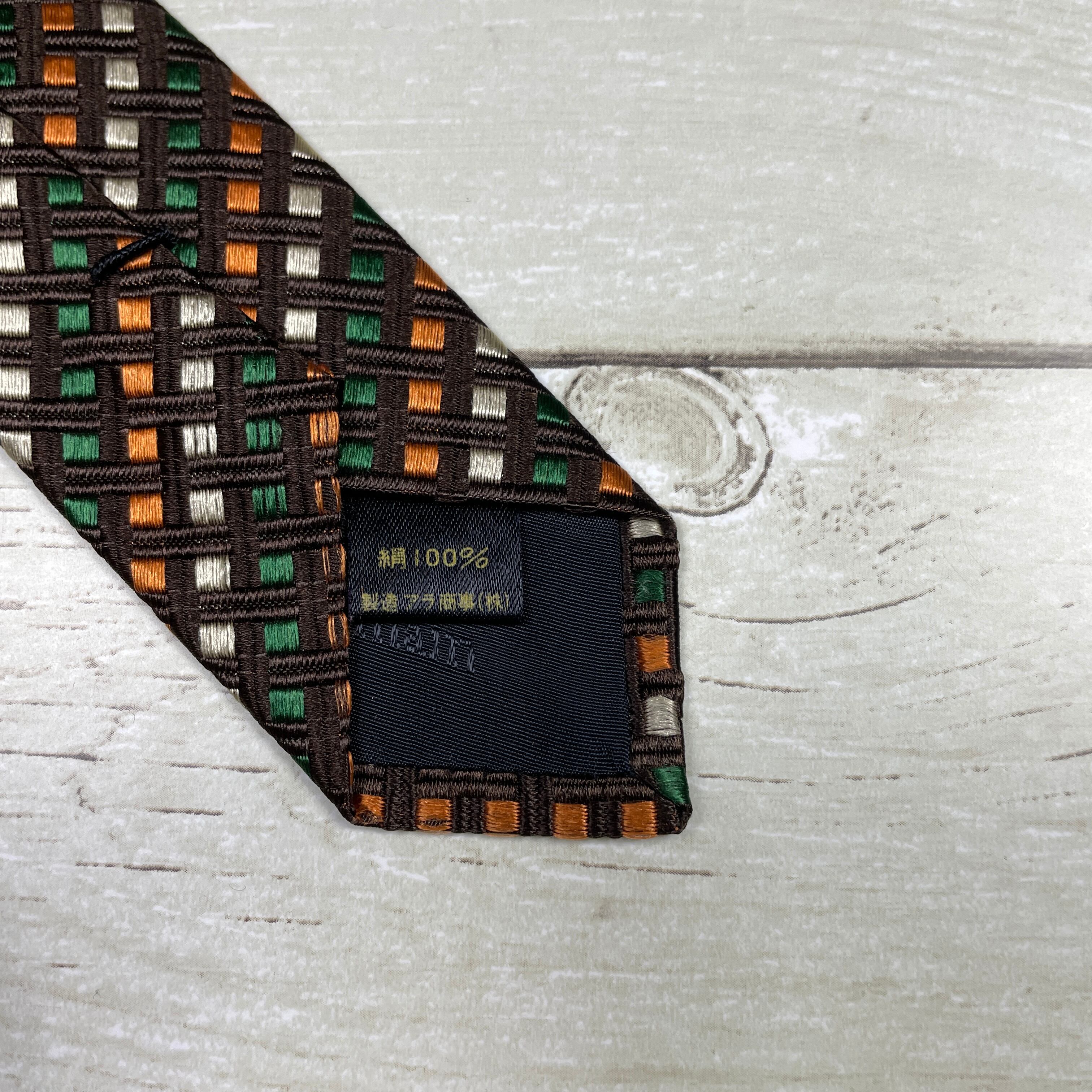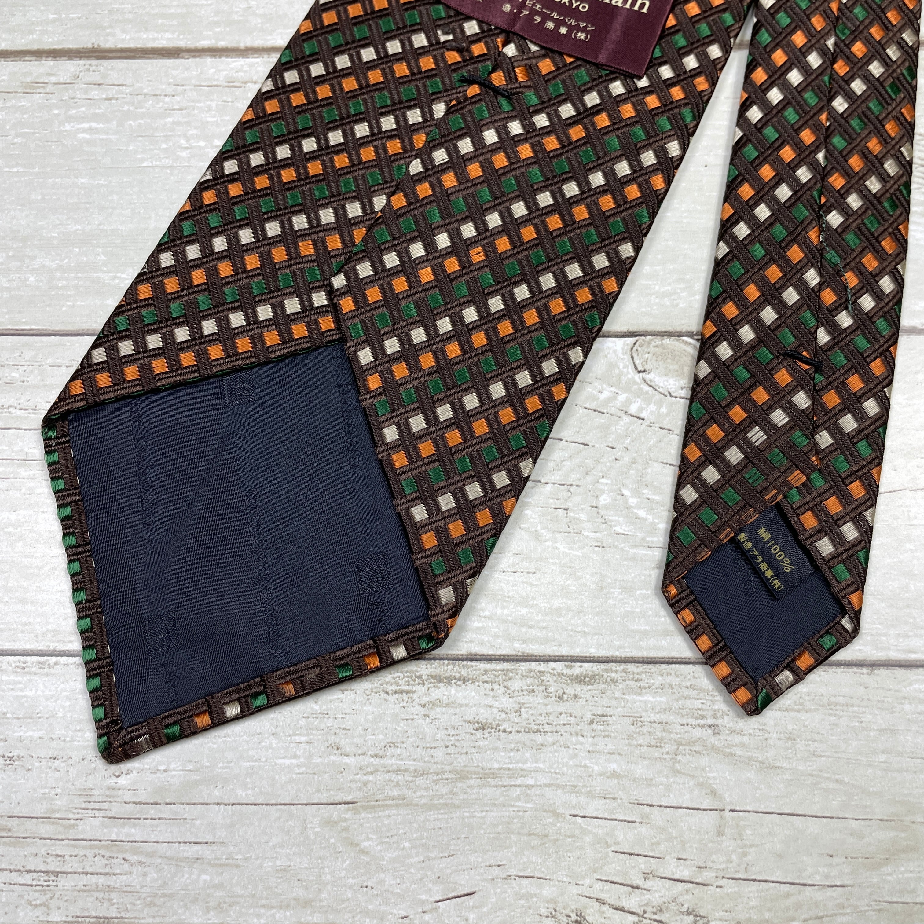 【高級】ピエールバルマン 総柄 マルチ 日本製 シルク ブラウン ネクタイ