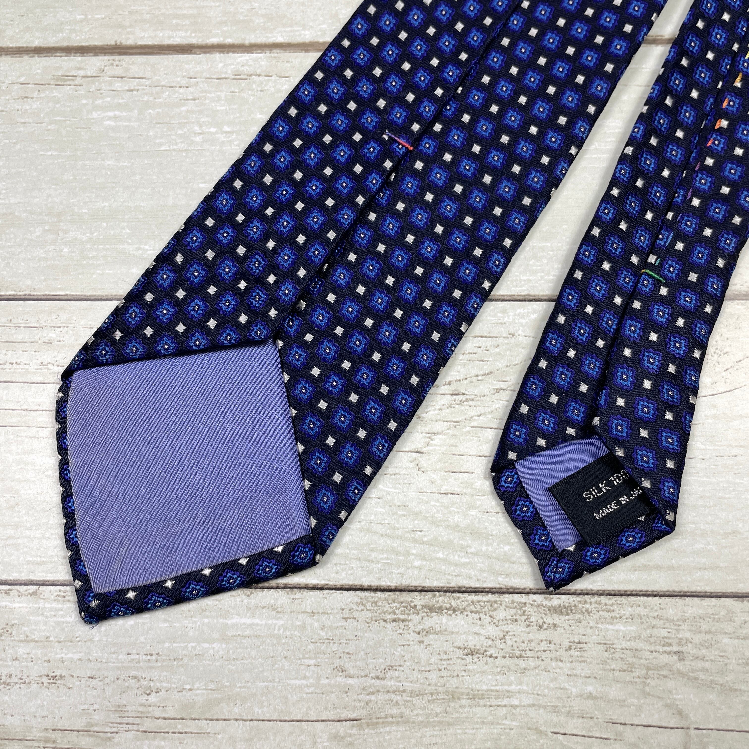 【美品】Savile Row/サヴィルロウ 総柄 ブルー 日本製 シルクネクタイ