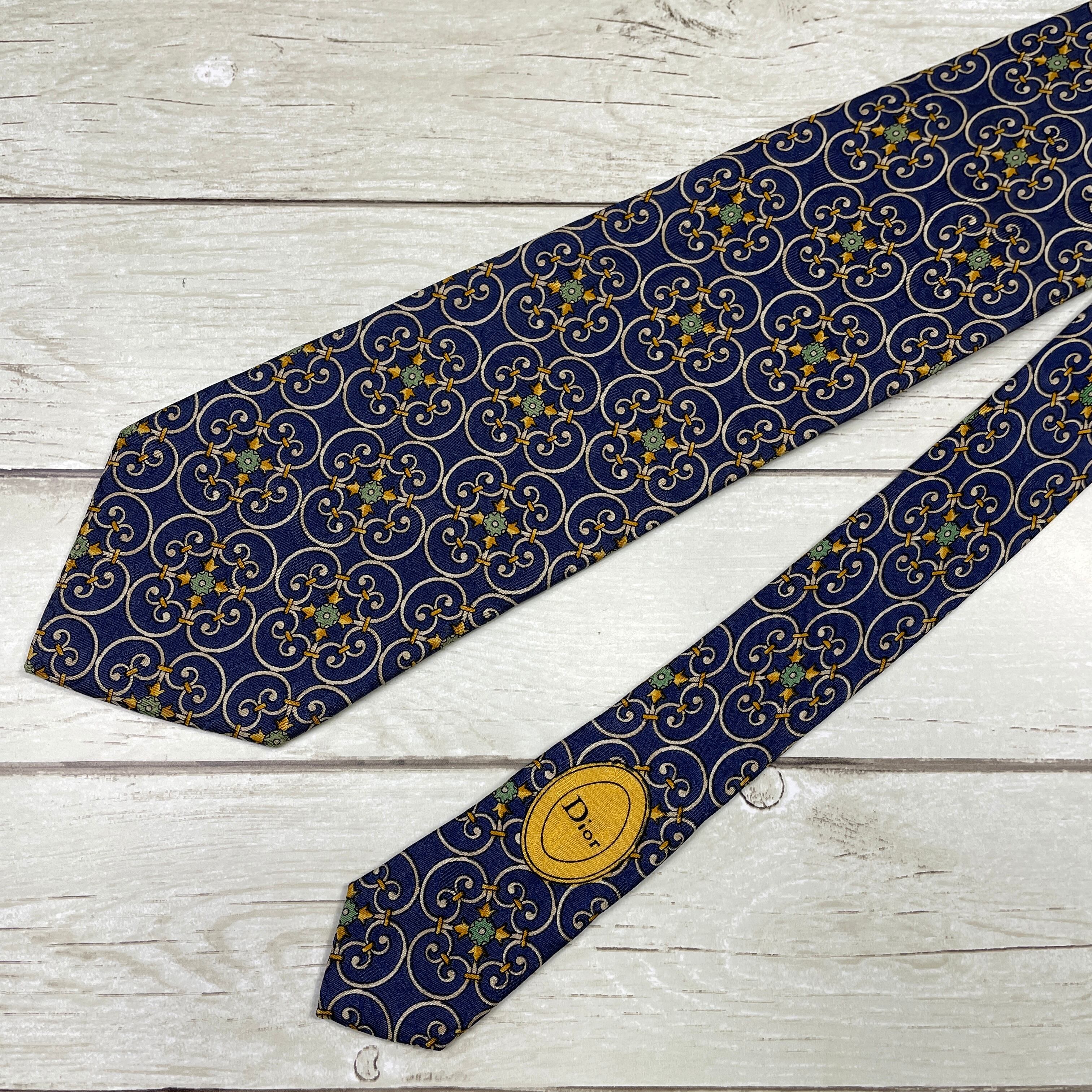 【高級】クリスチャンディオール 総柄 ブルー フランス製 シルク ネクタイ
