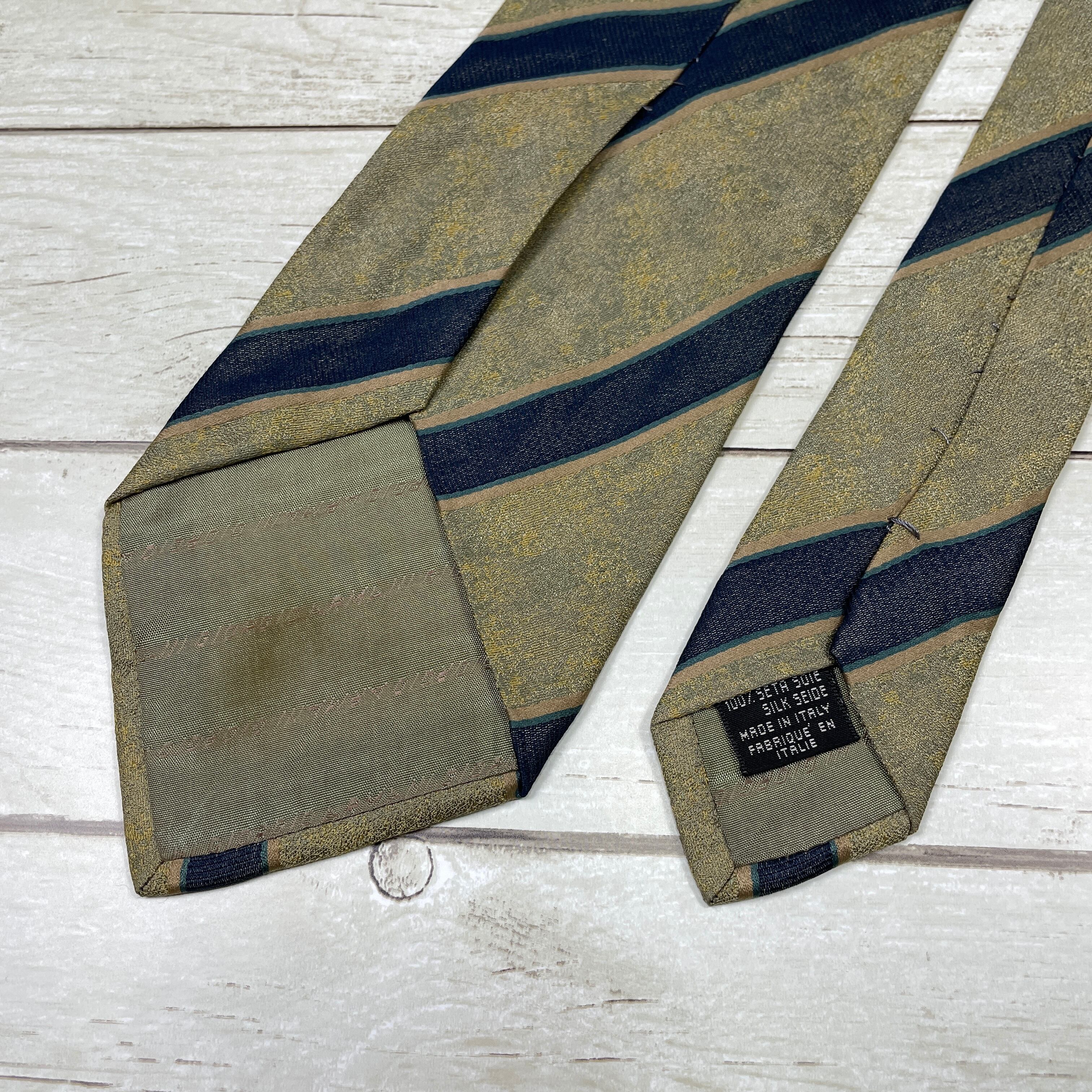 【高級】ジョルジオ アルマーニ ストライプ 金 青 イタリア製 シルク ネクタイ