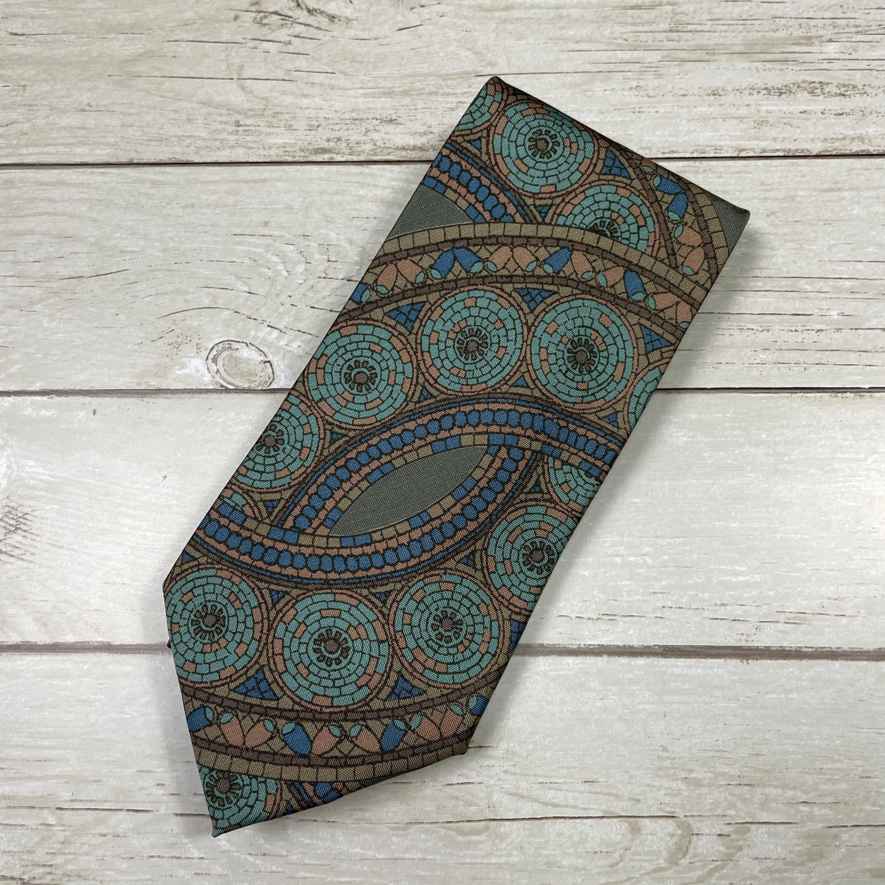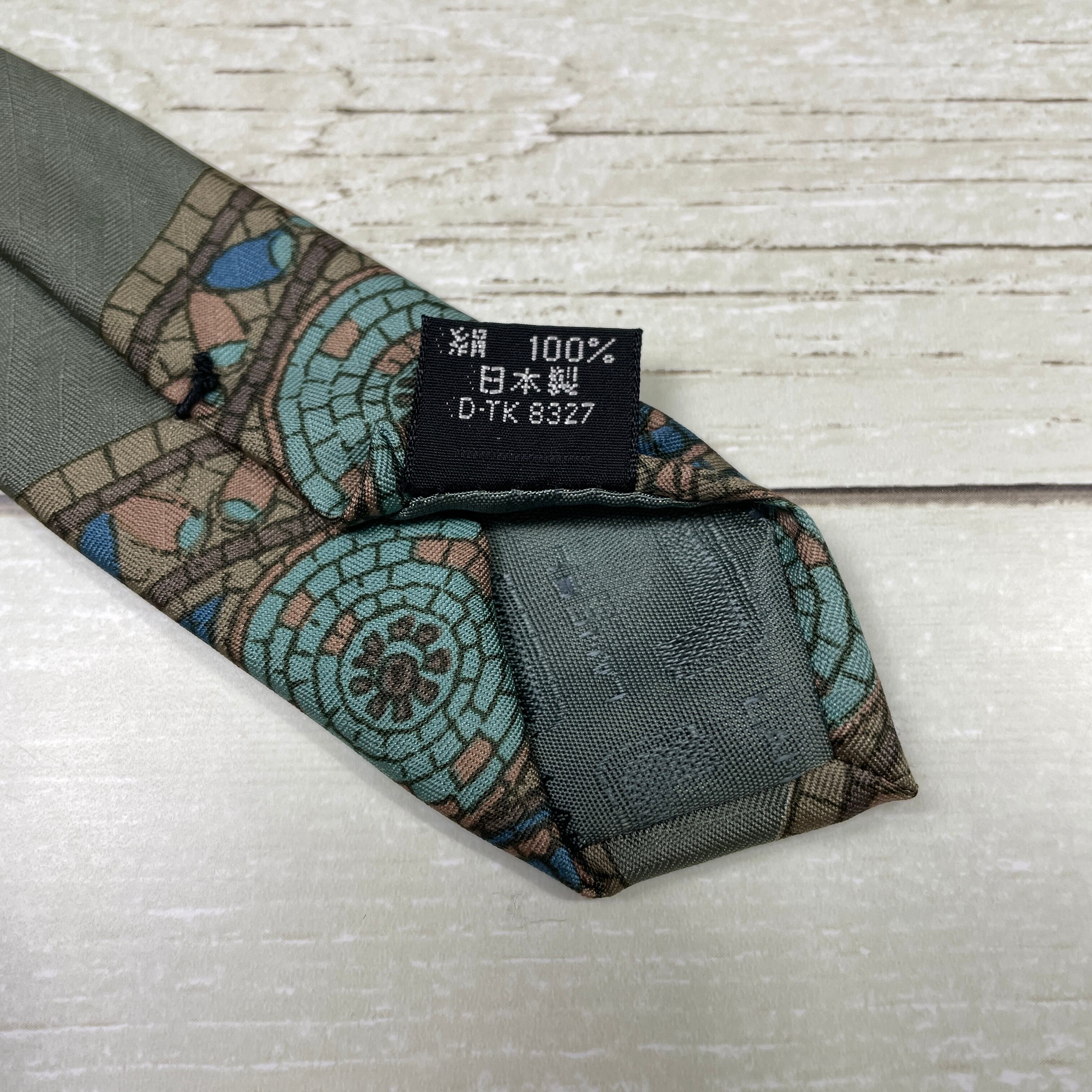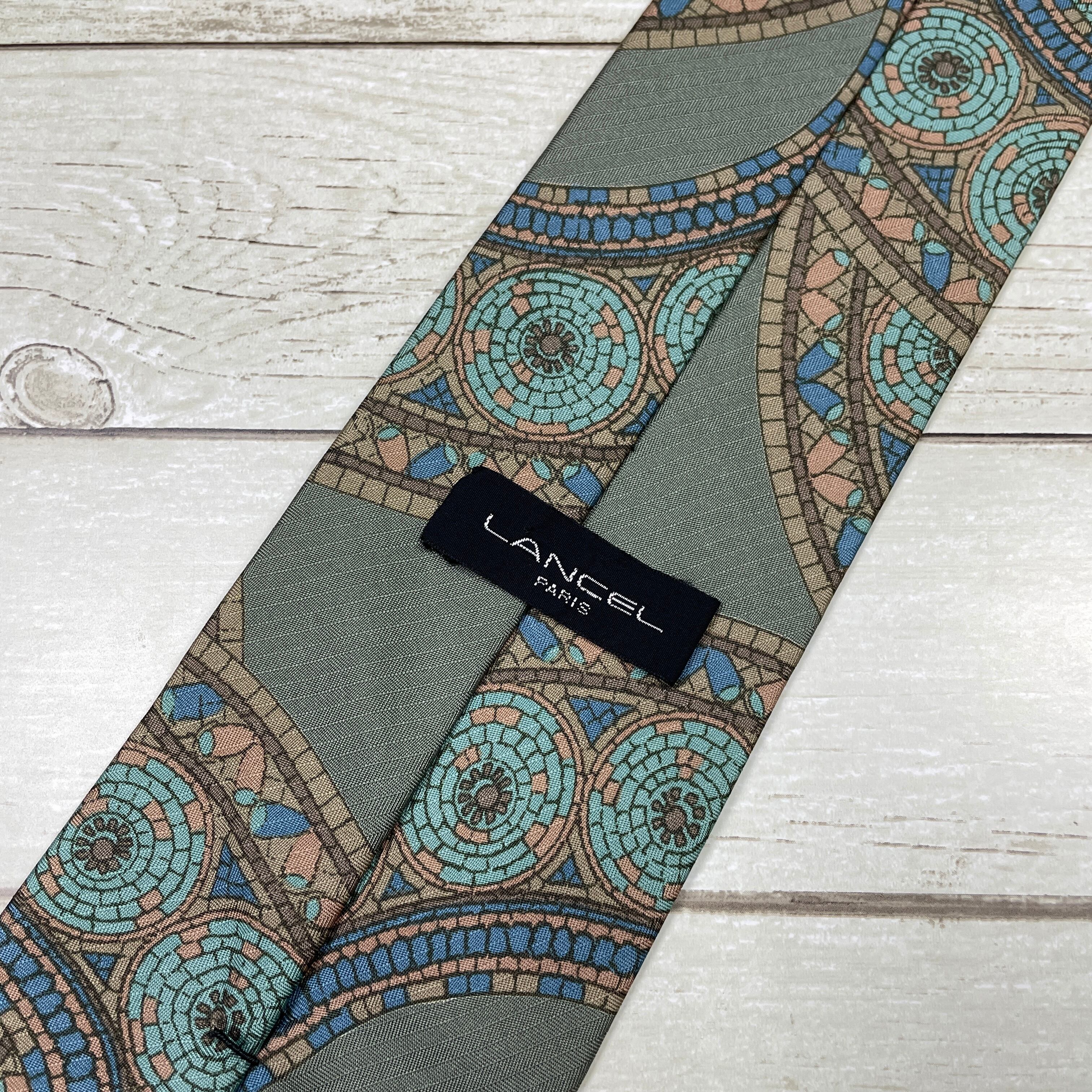【レトロ】LANCEL/ランセル ターコイズ カーキ 総柄 日本製 シルク