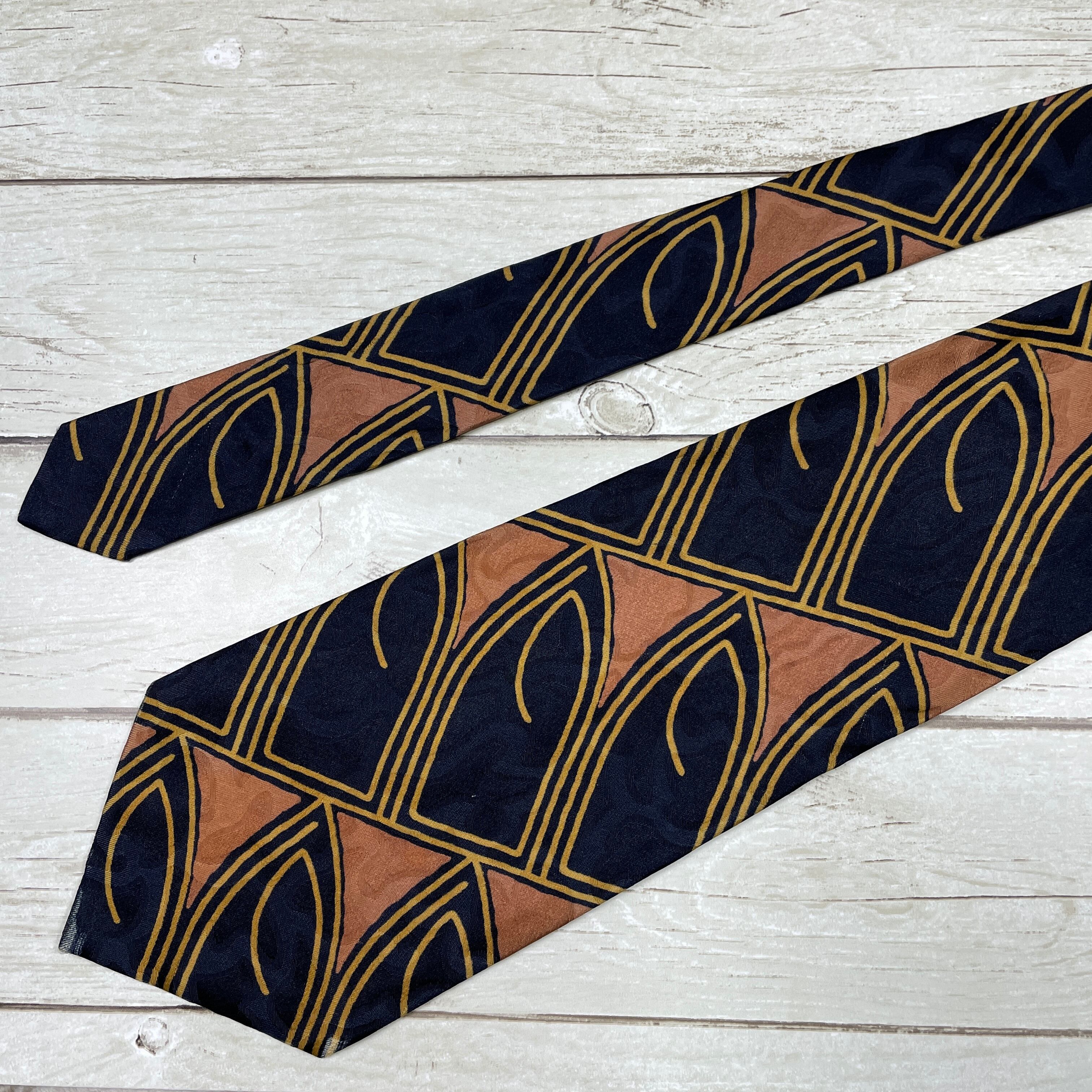 【高級】ピエールバルマン 総柄 個性 古着 ネイビー 総柄 シルク ネクタイ