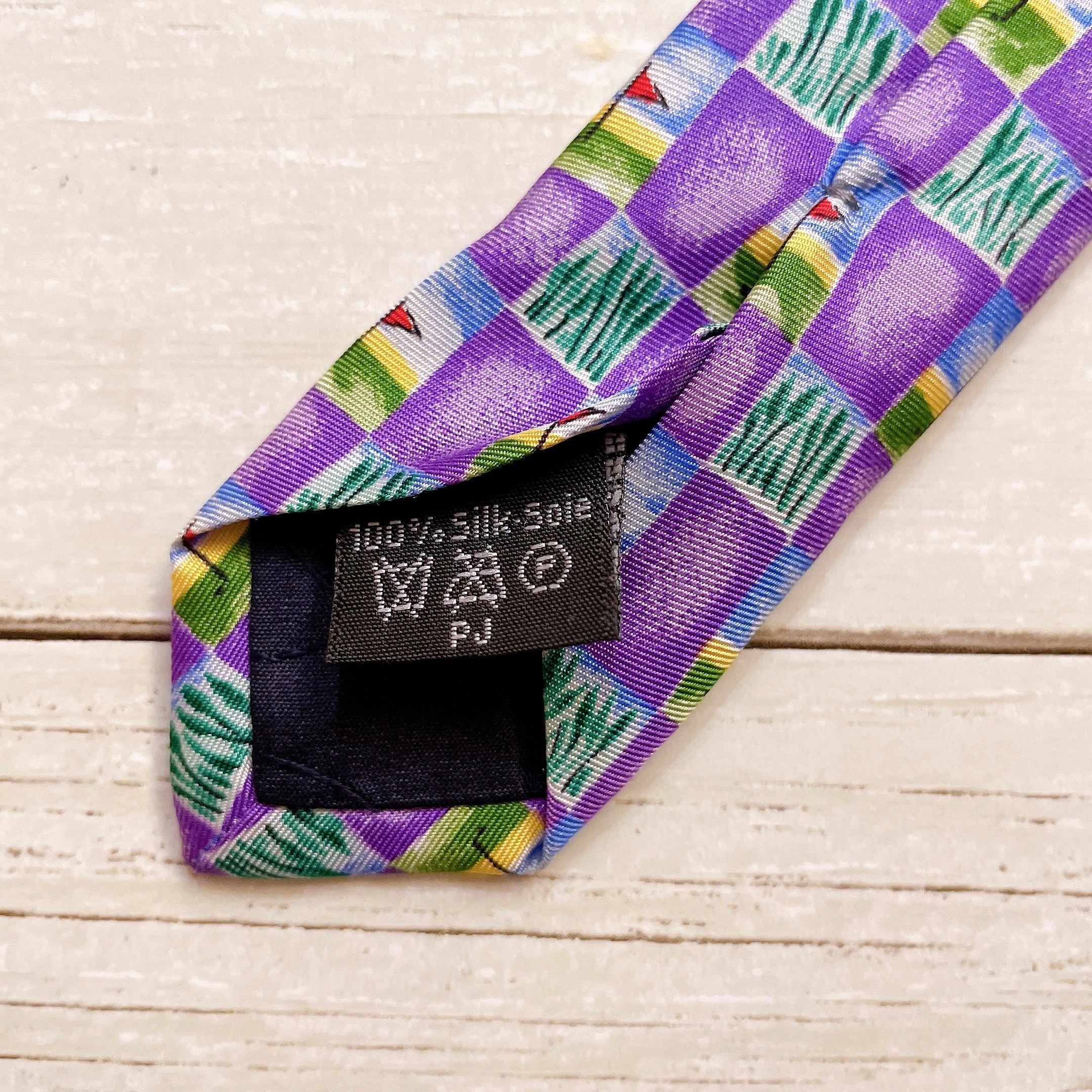 【美品】dunhill /ダンヒル パープル×グリーン 総柄 イタリア製 シルク ネクタイ