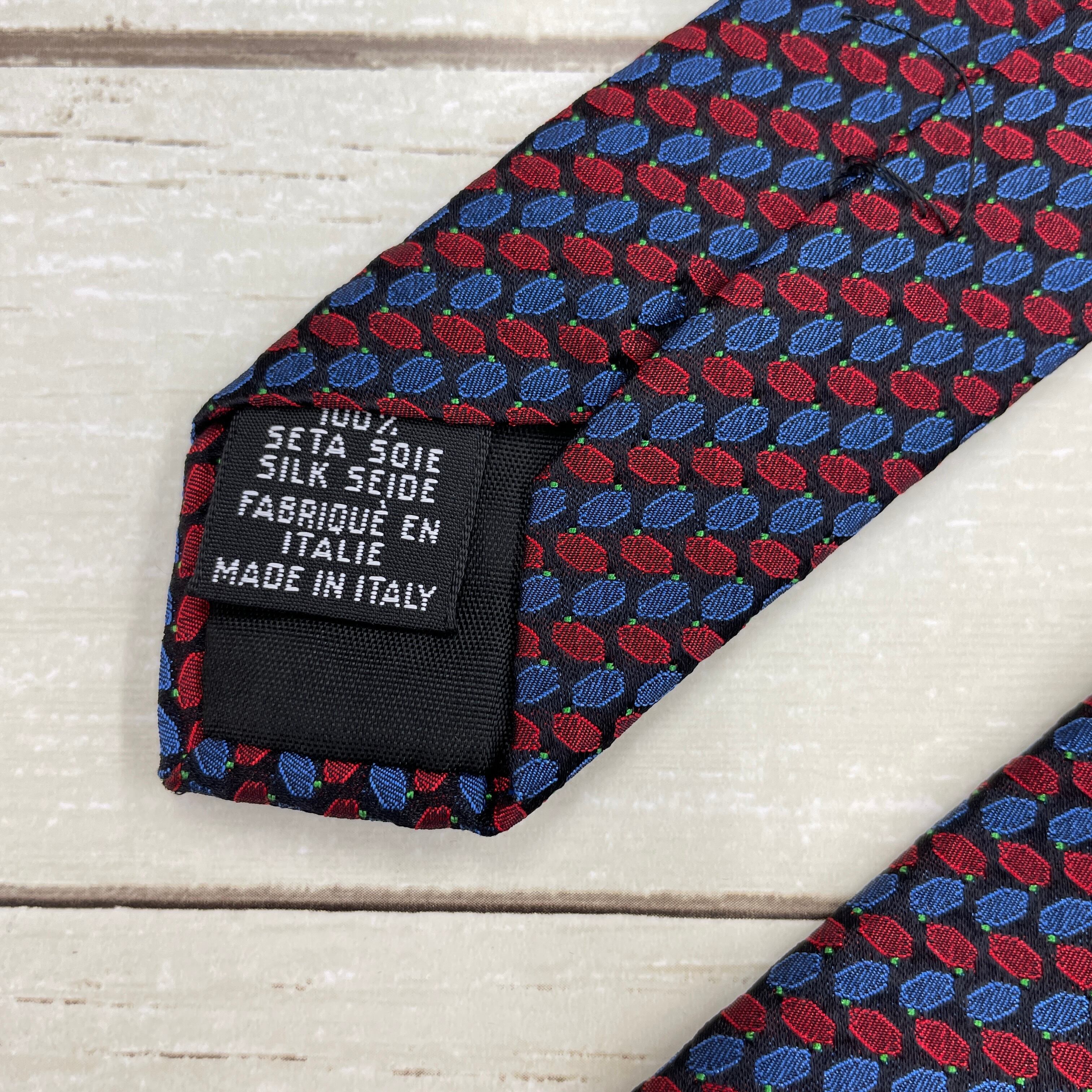 【美品】LONGCHAMP/ロンシャン ブラック×レッド×ブルー 総柄 イタリア製 シルク ネクタイ