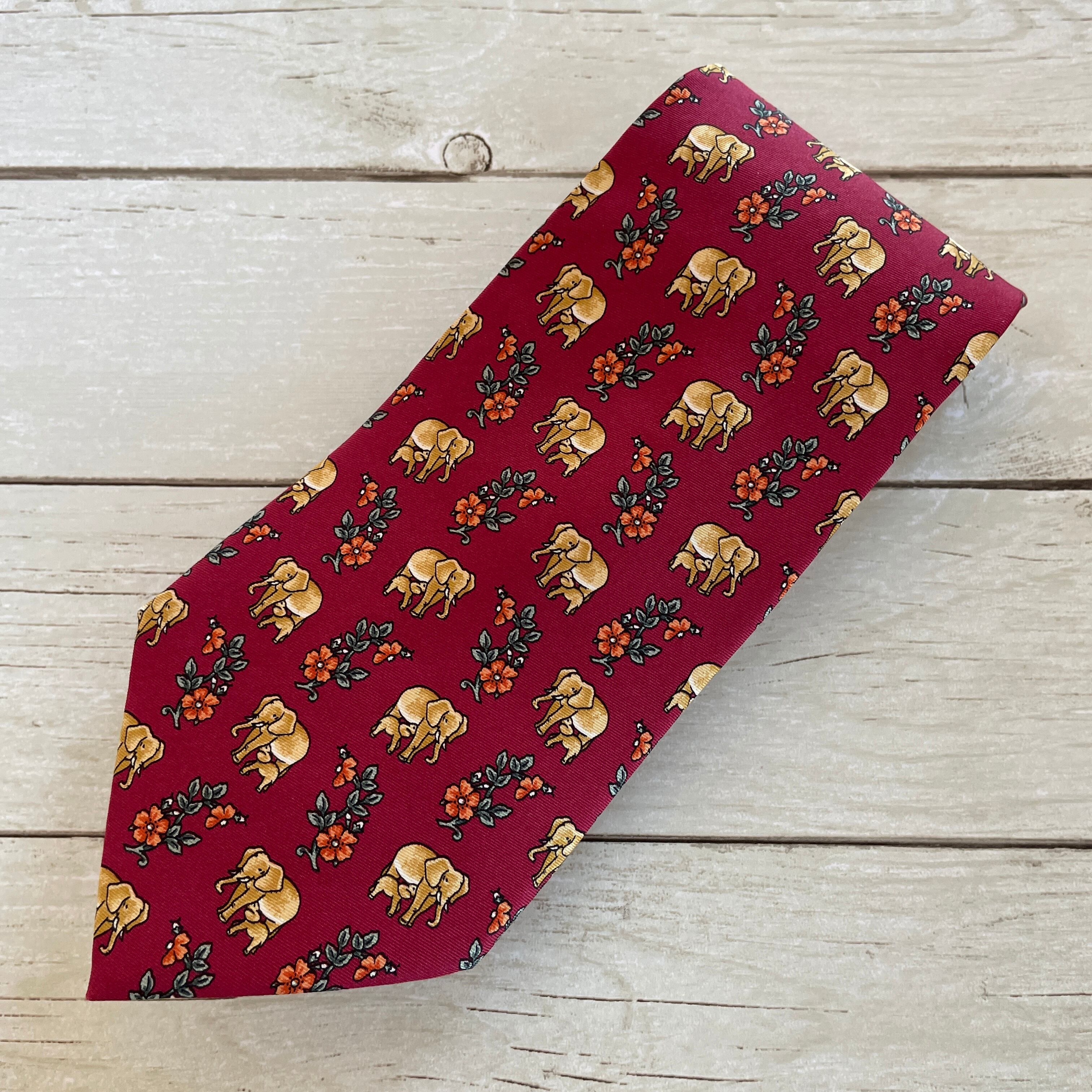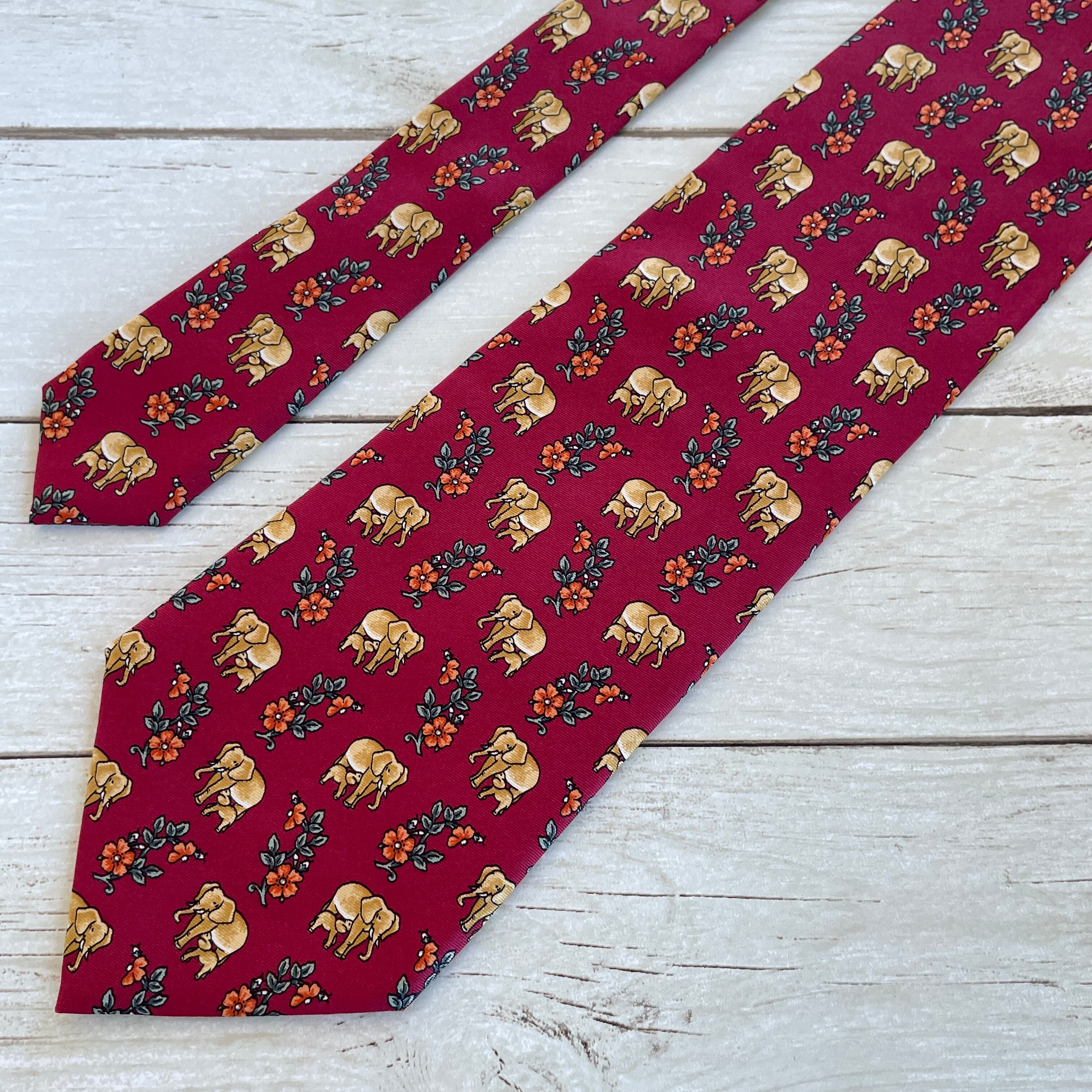 【良品】NINA RICCI/ニナリッチ ボルドー×ゴールド 小紋柄 象 シルク ネクタイ